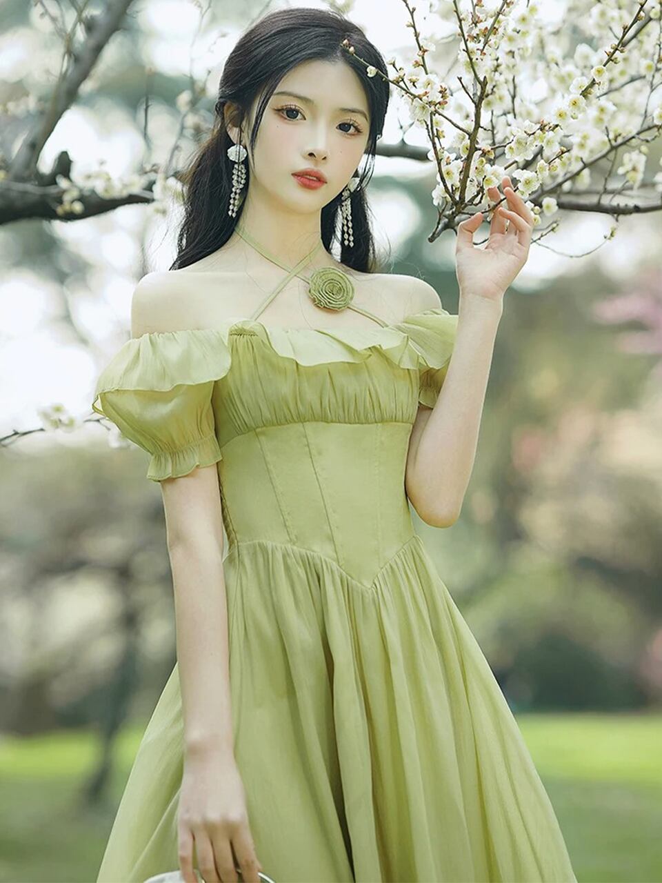 【0010】Off Shoulder Cross Neck Short Sleeve Dress