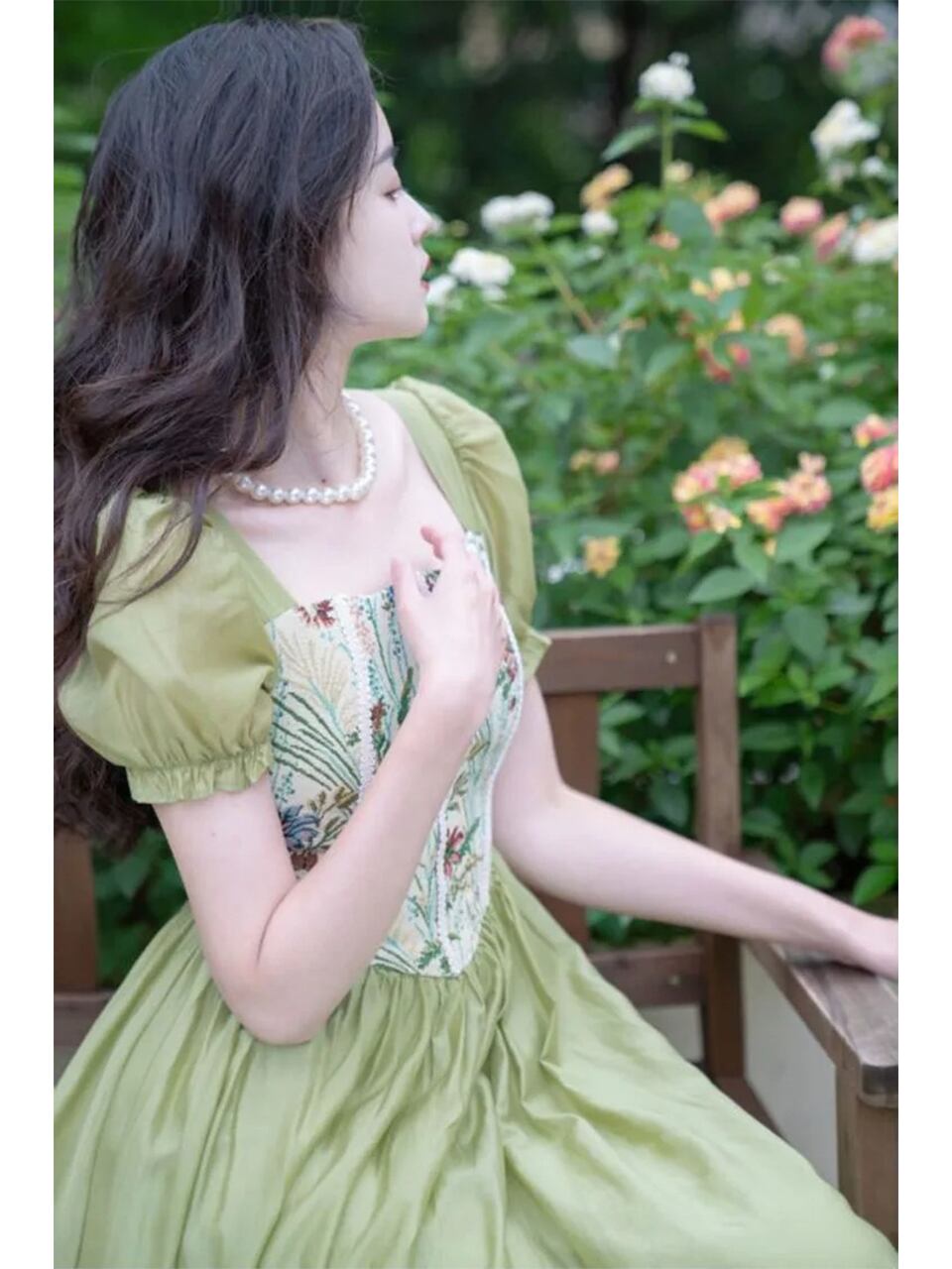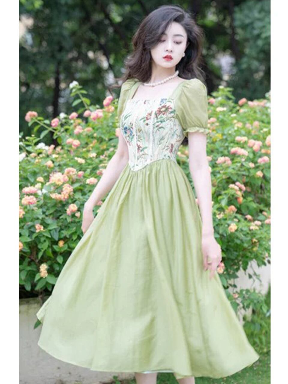 【0014】French Style Green Short Sleeve Dress