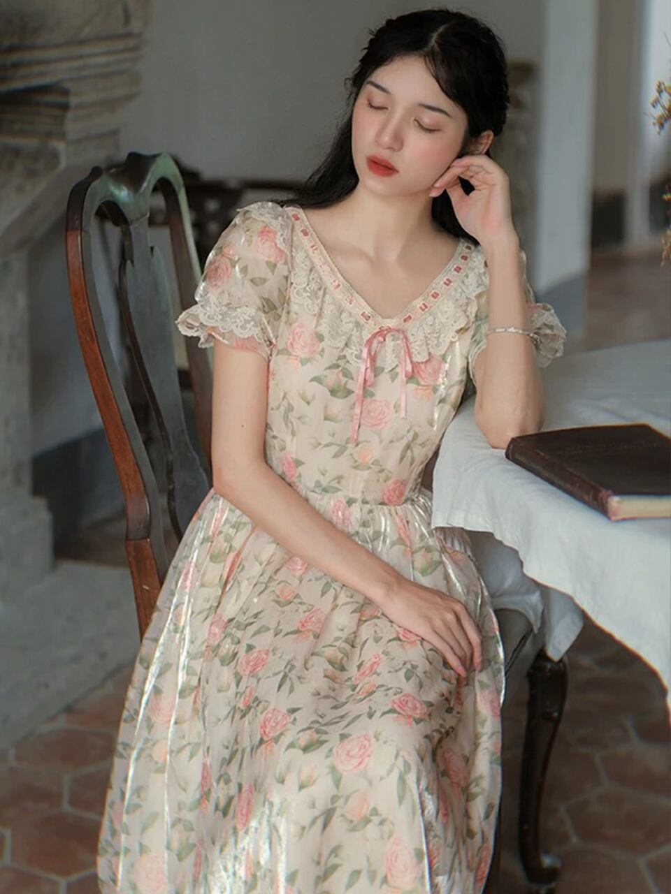【0024】Ruffle Hem Flower Puff Short Sleeve Dress