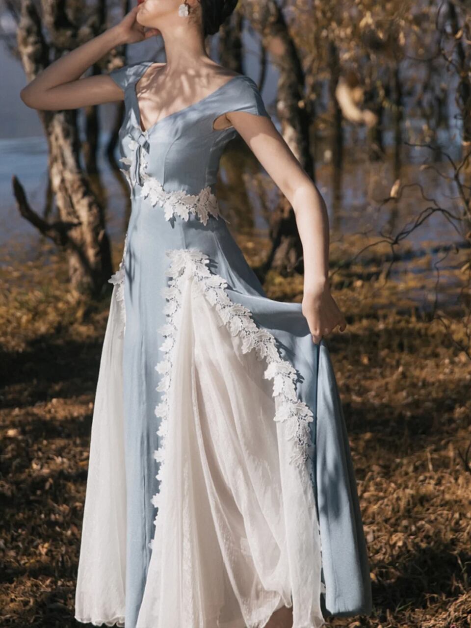 【0042】V-neck Bicolor Lace Short Sleeve Dress