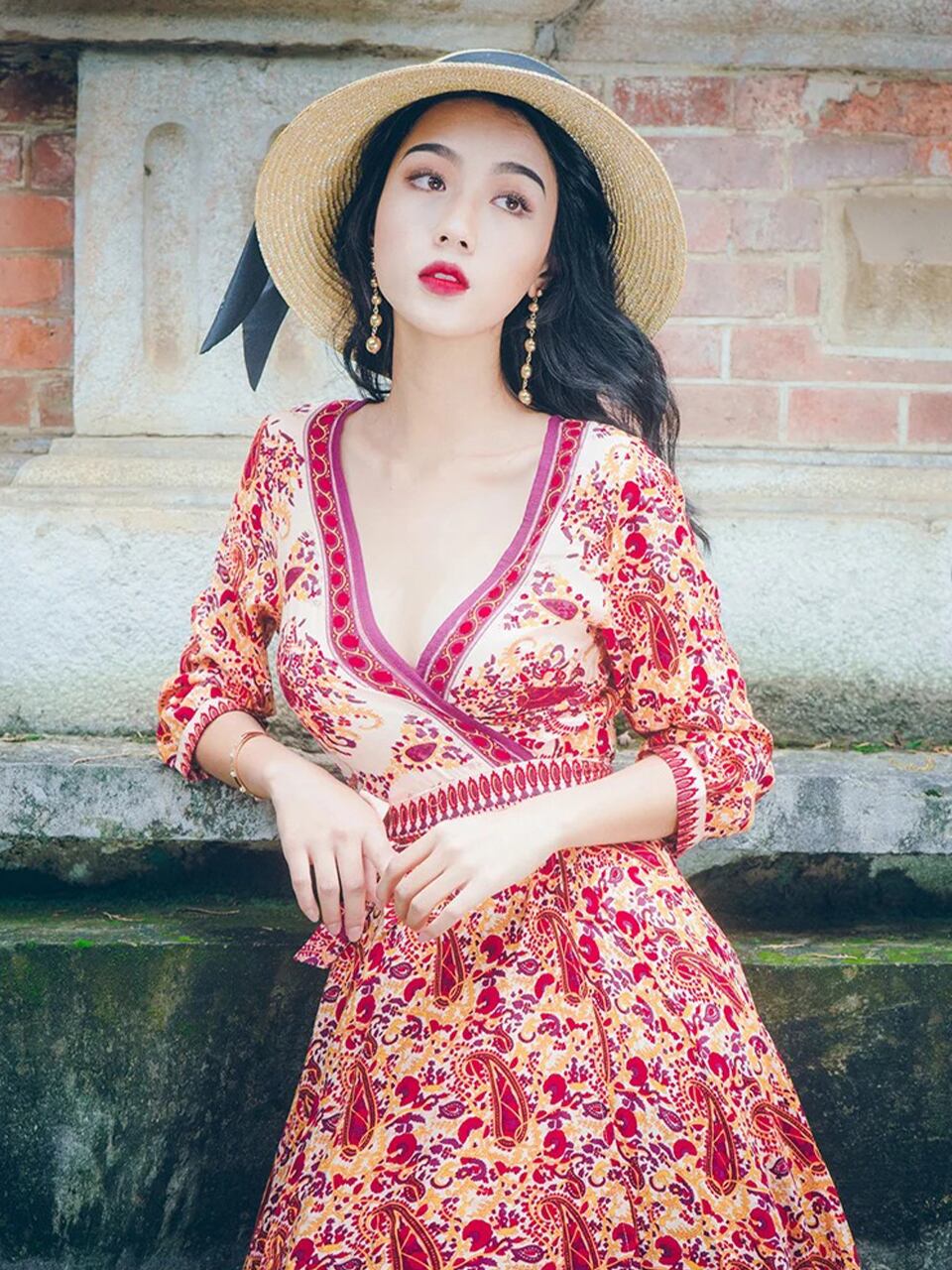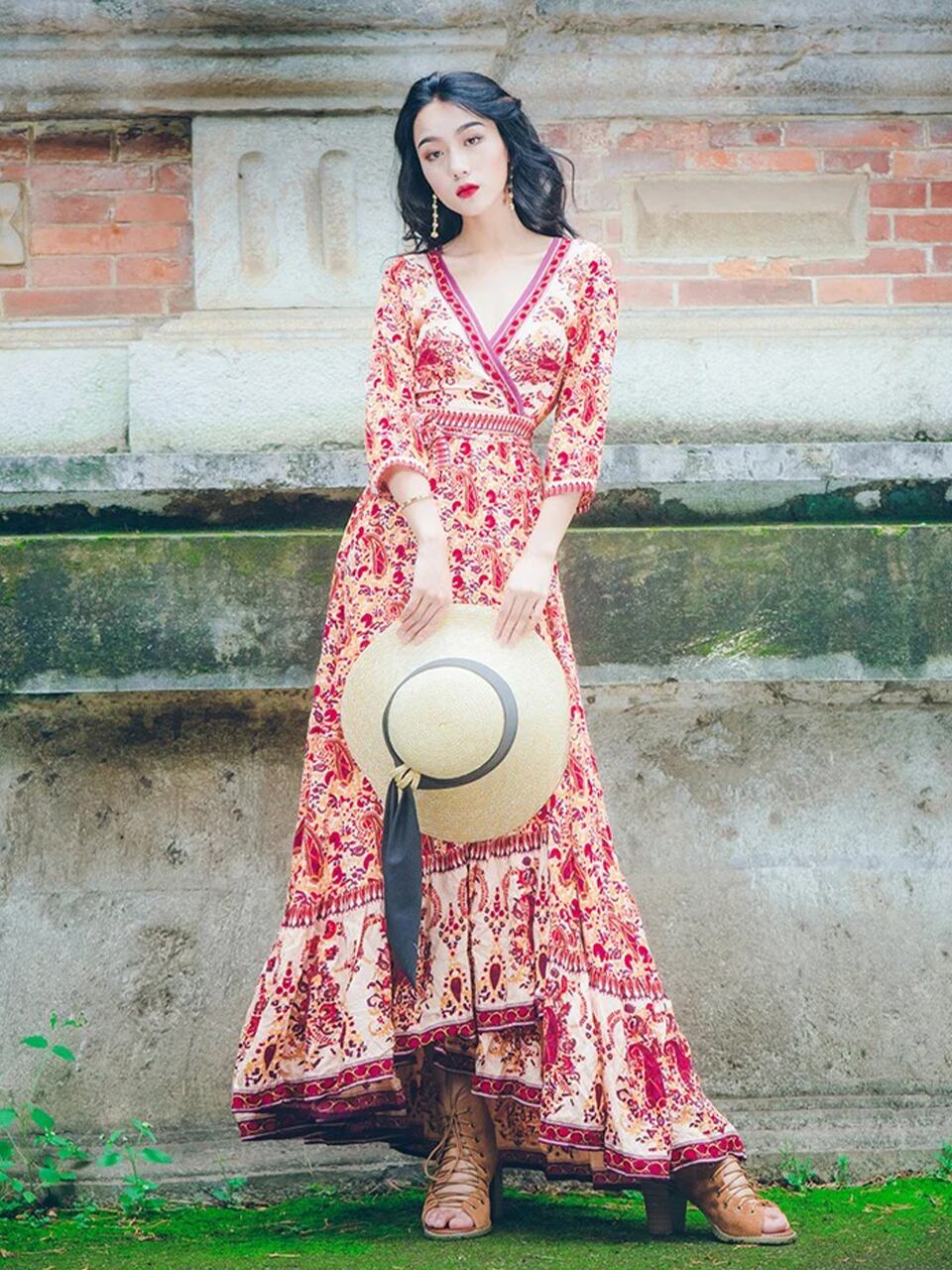 【0048】Side Slit Bohemian Short Sleeve Dress