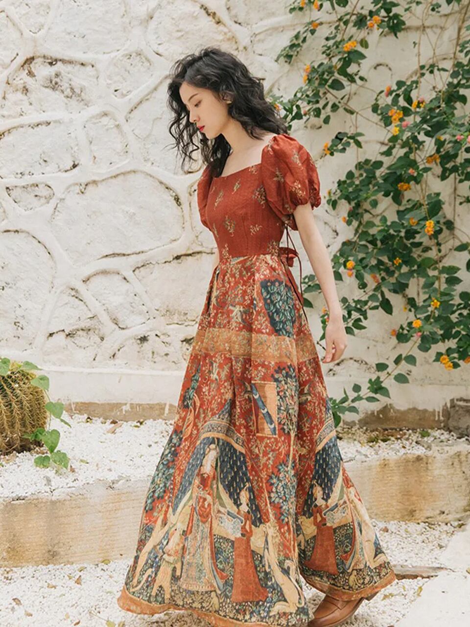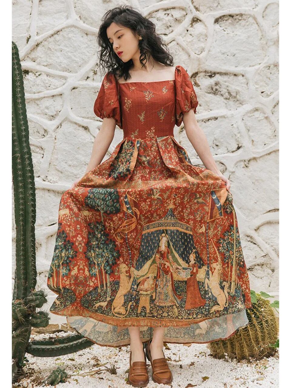 【0054】Square Neck Ethnic Short Sleeve Dress