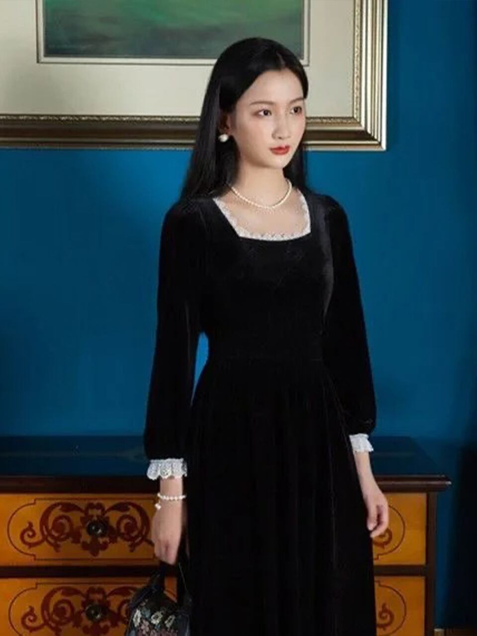 【0077】Elegant Lace Velvet Long Sleeve Dress