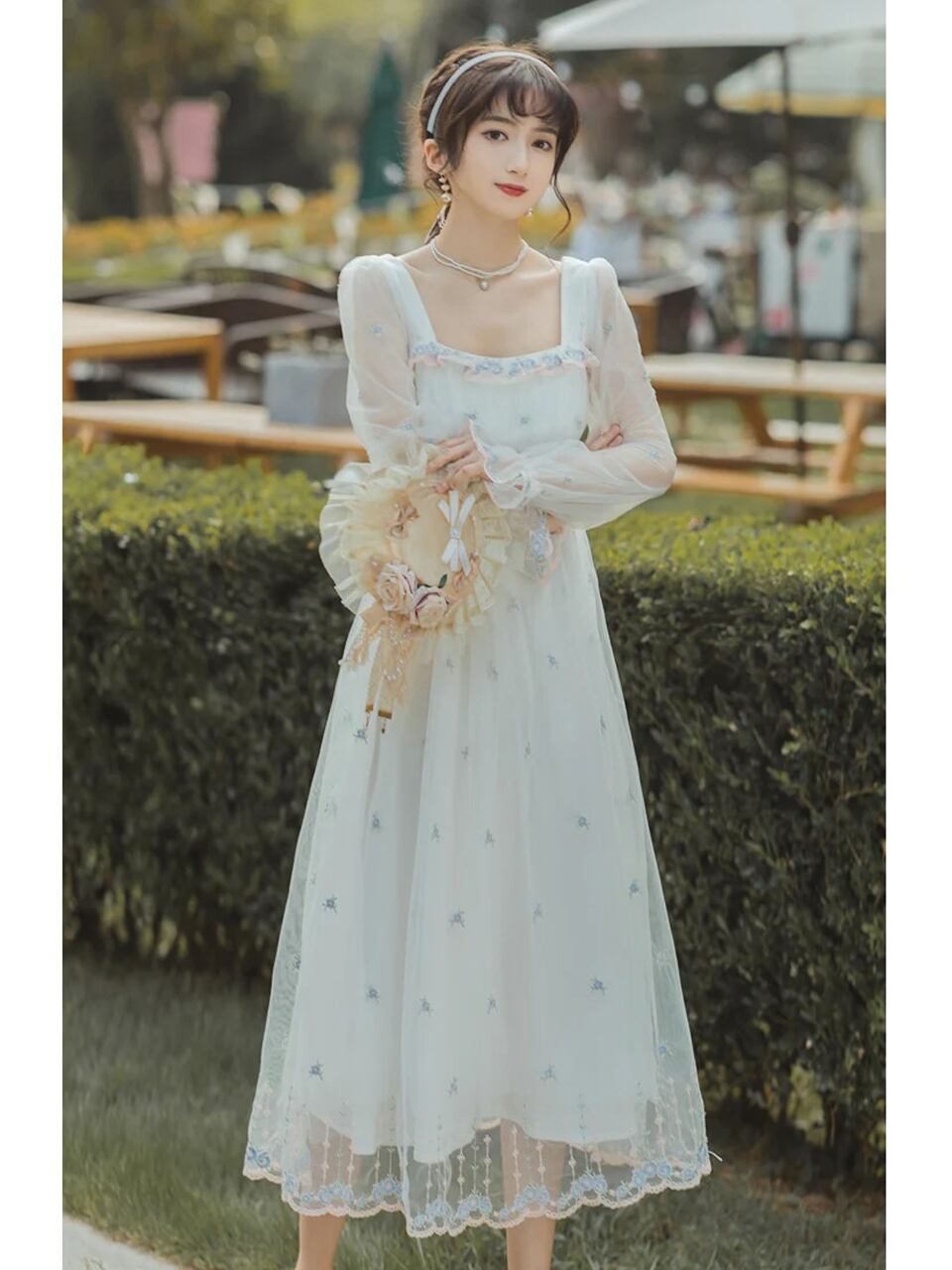 【0095】Simple Flower Embroidery Long Sleeve Dress