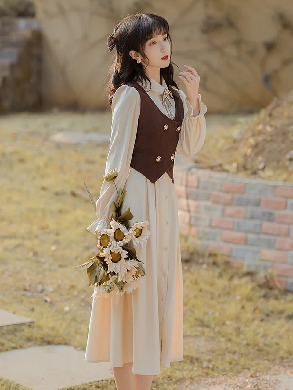 【0151】2sets Retro Style Long Sleeve Dress