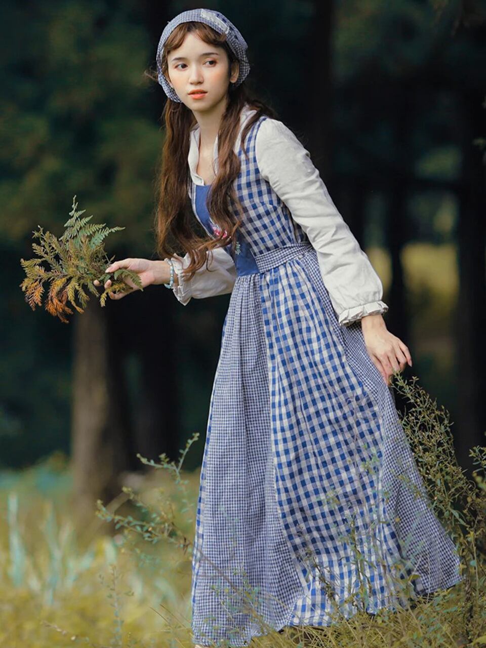 【0174】Patchwork Check Blue Long Sleeve Dress