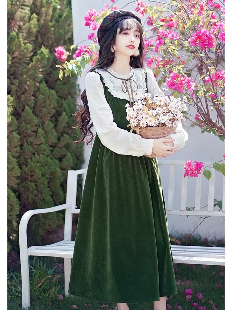 【0181】Faux Layered Vintage Velvet Long Sleeve Dress
