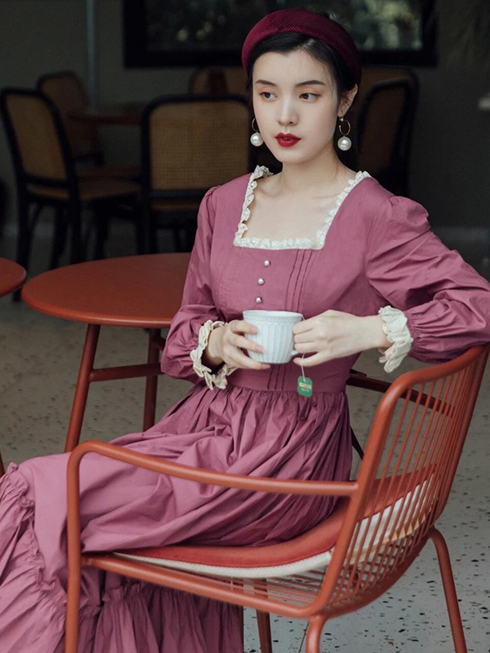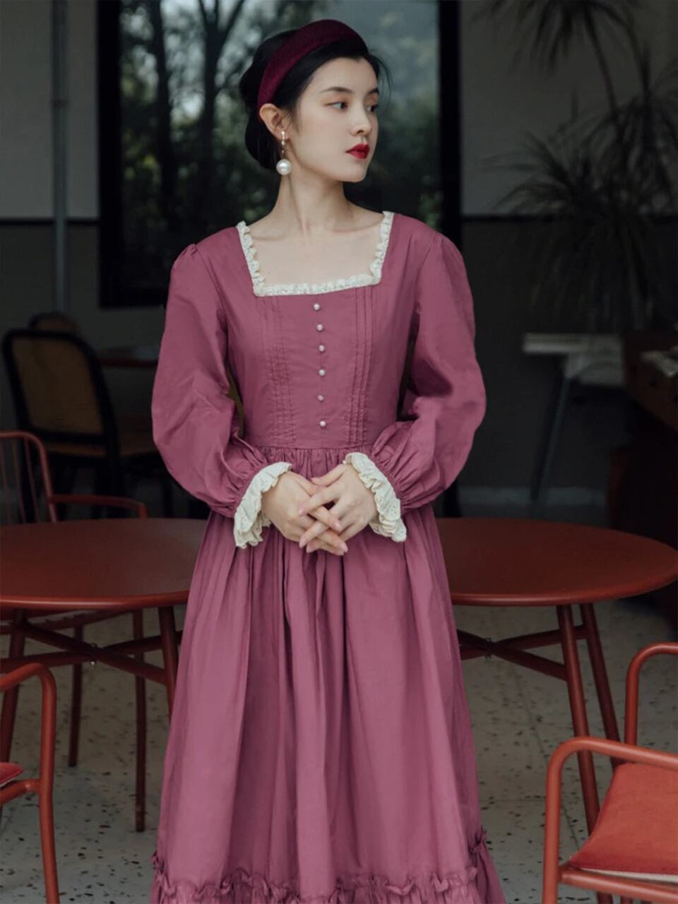 【0184】Waist Ribbon Maxi Length Long Sleeve Dress