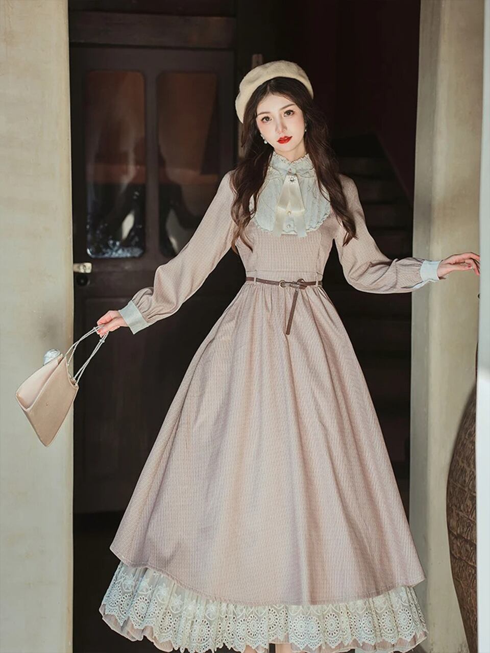 【0193】Loose Casual With Belt Long Sleeve Dress