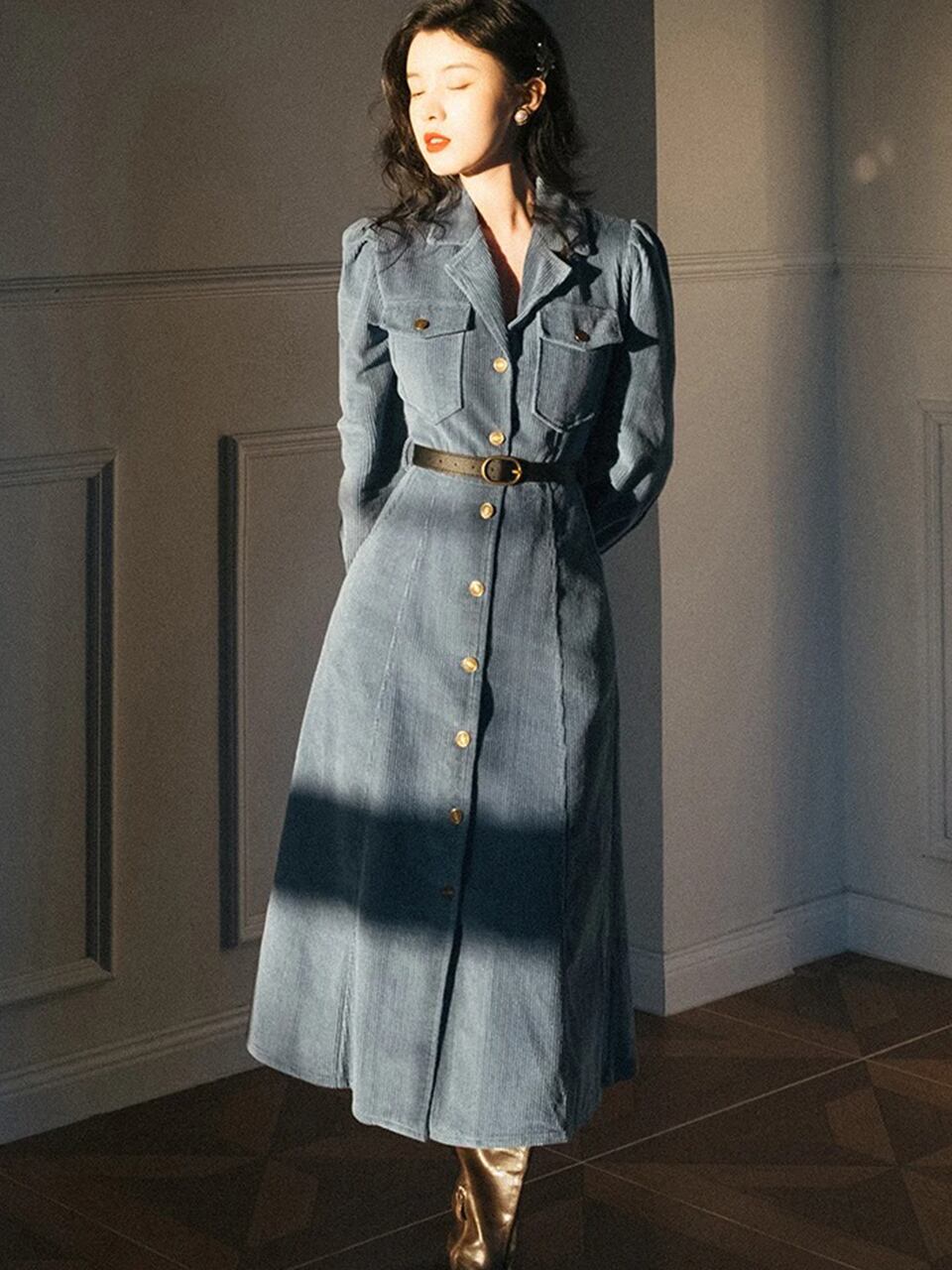 【0195】 Modern Corduroy Shirt Long Sleeve Dress
