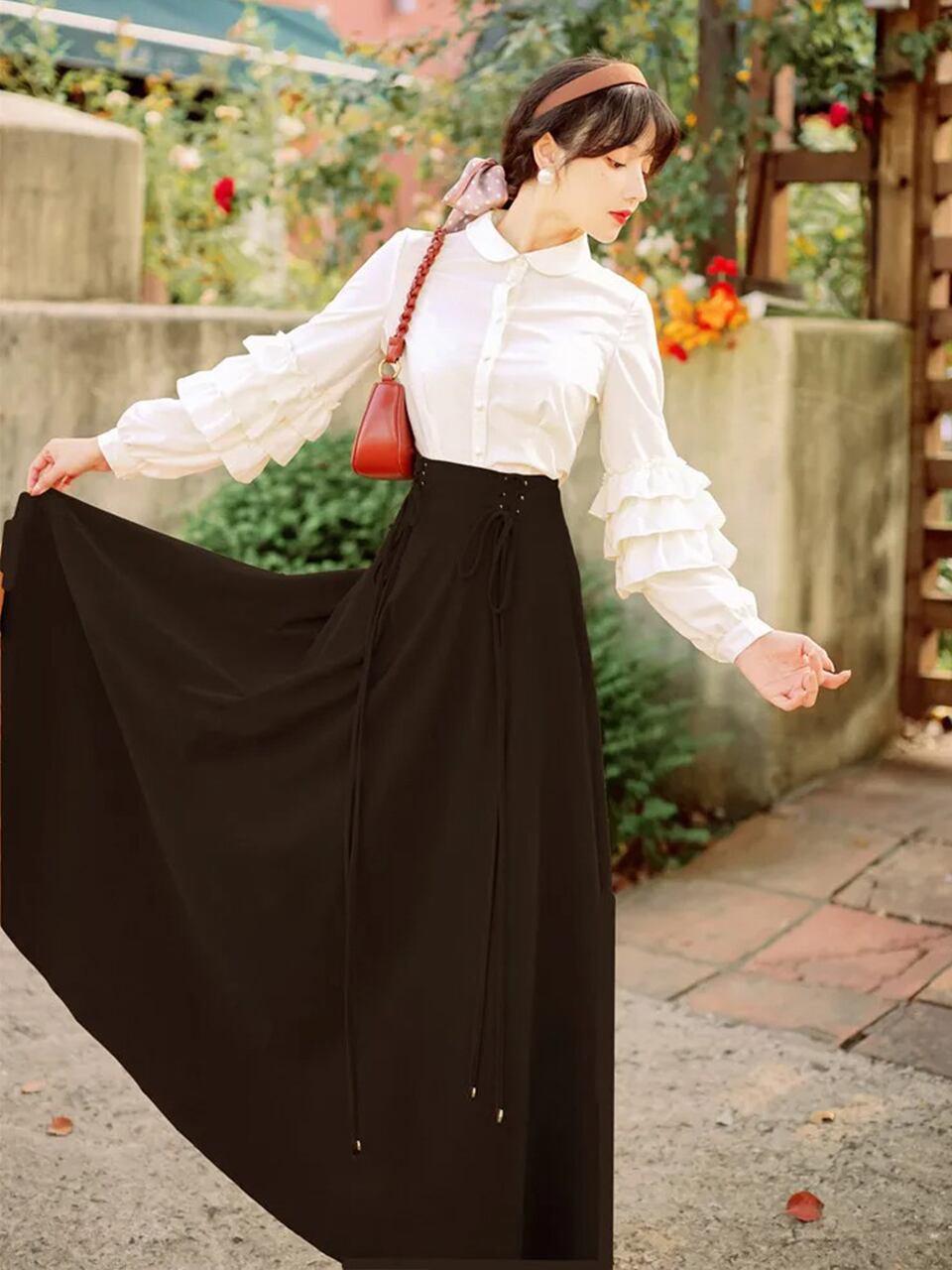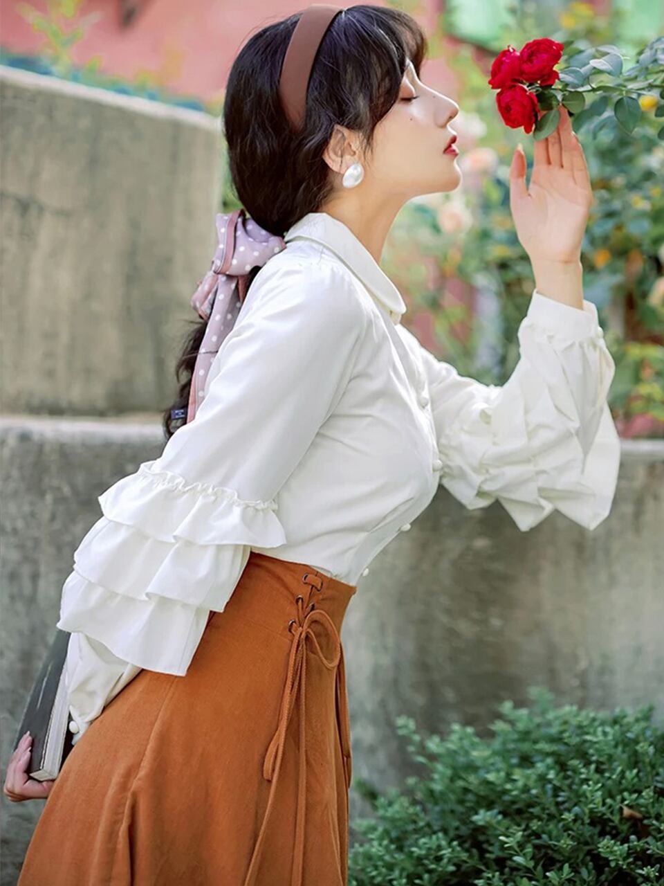 【0205】Tiered Shirt Corduroy Skirt Long Sleeve 2 Piece Set