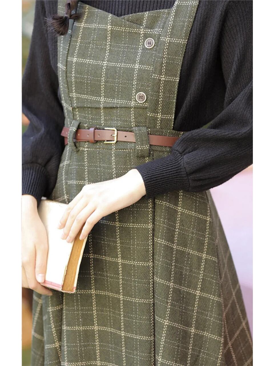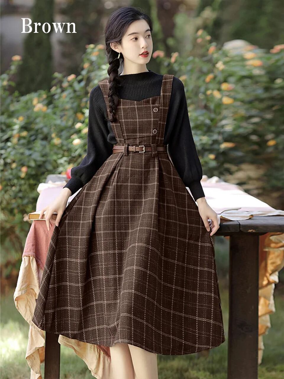 【0221】Knit Check Jean Skirt Long Sleeve 2 Piece Set