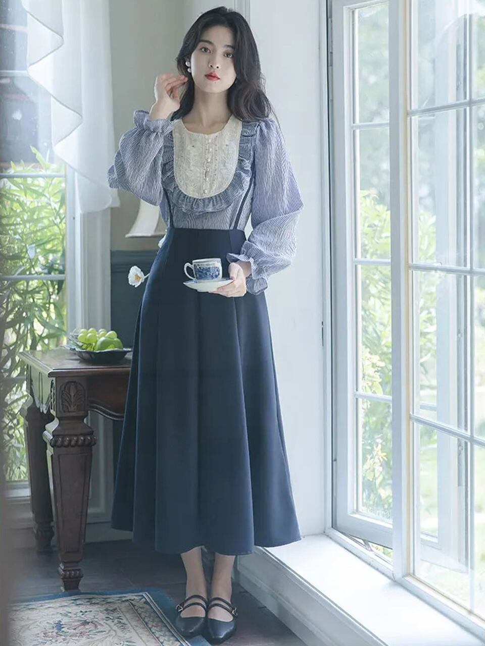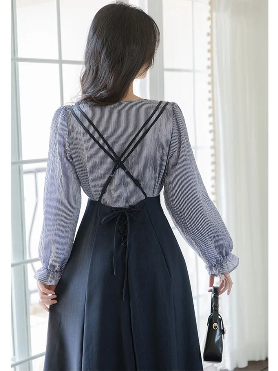 【0222】Elegant Skirt Stripes Long Sleeve 2 Piece Set