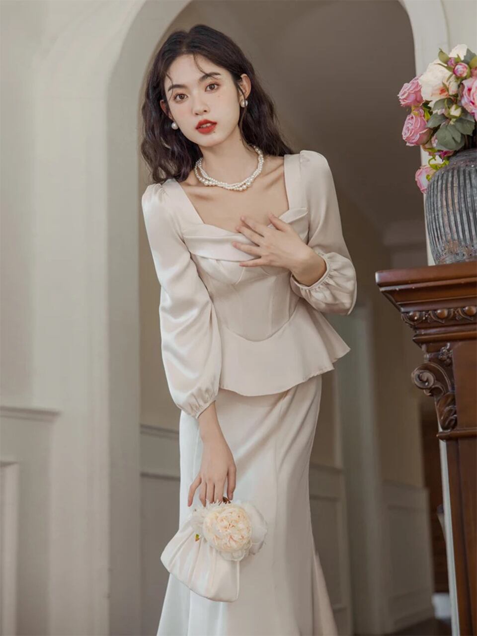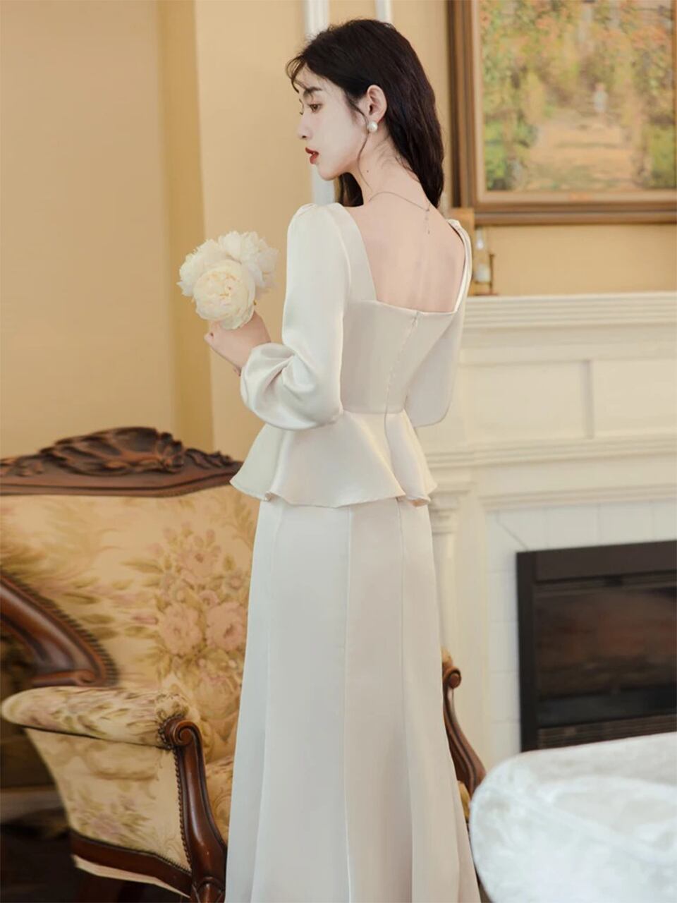 【0248】Frill Square Neck Lantern Long Sleeve Dress