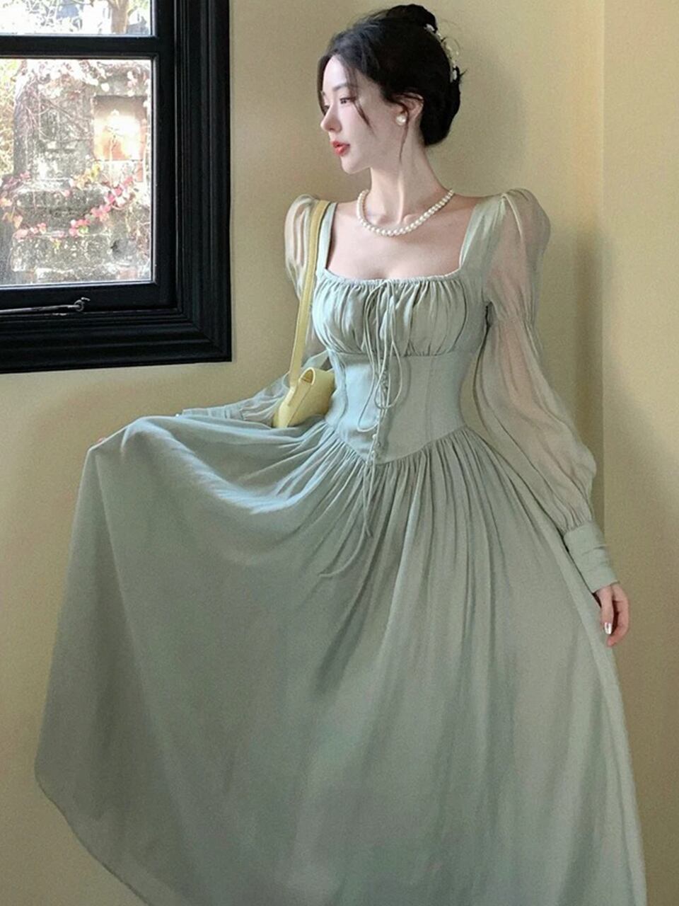 【0252】Vintage Chiffon Lantern Long Sleeve Dress
