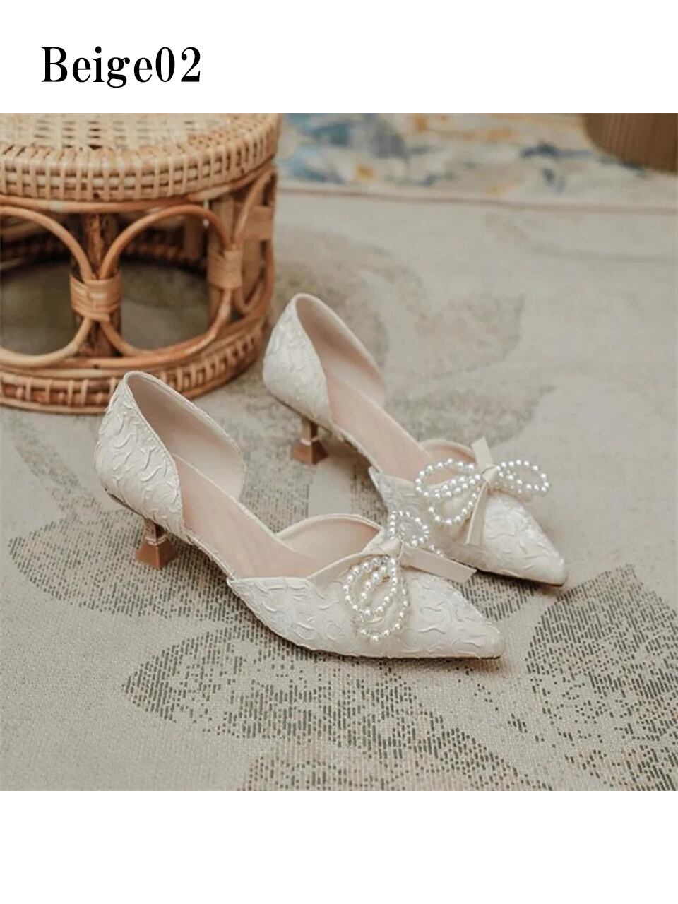 【0298】Pearl Ribbon Satin Pumps Shoes