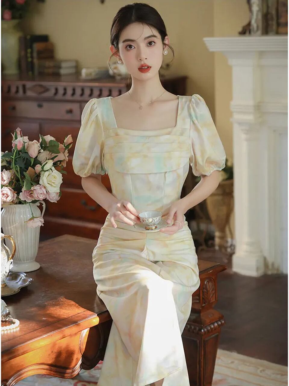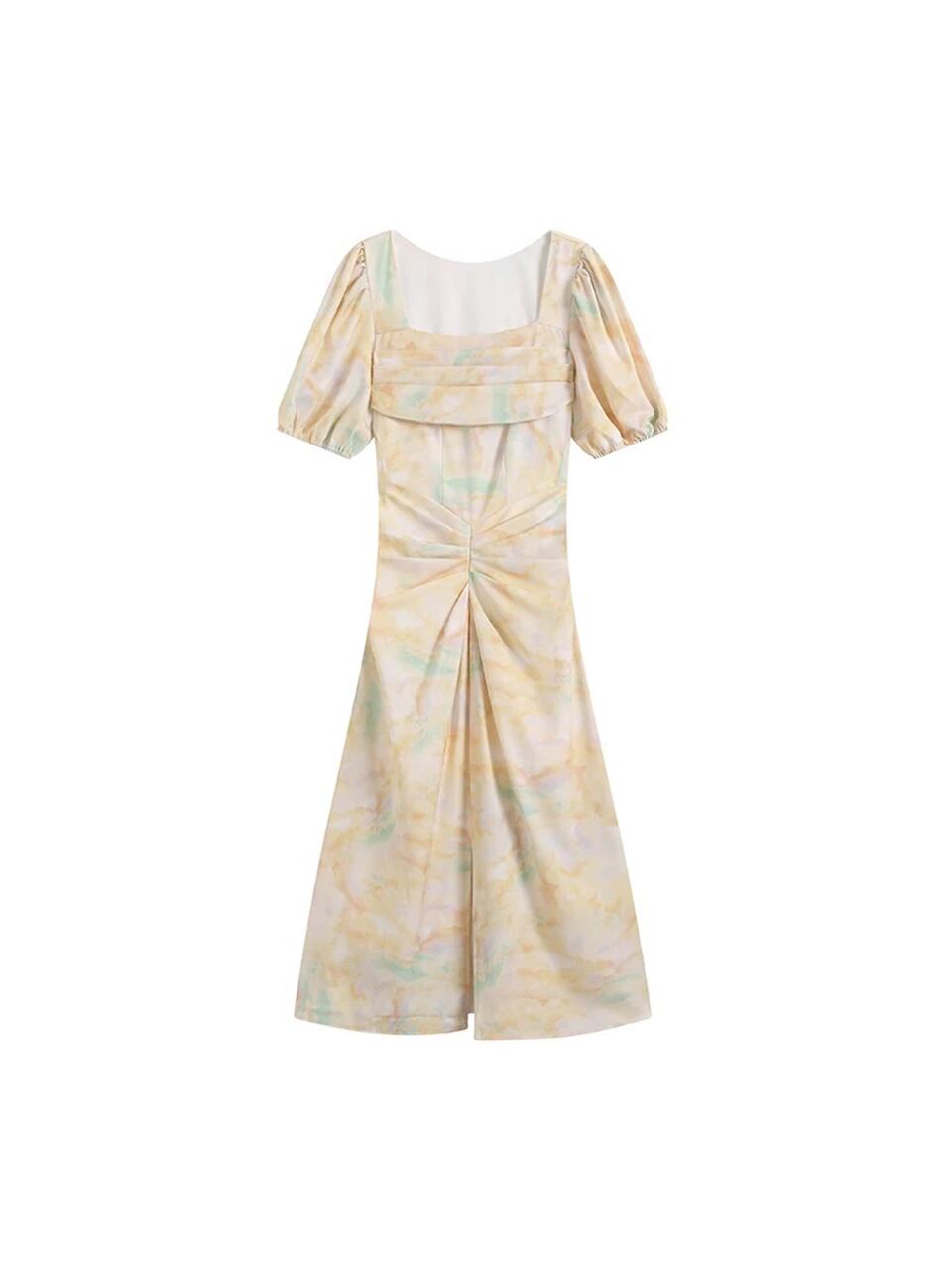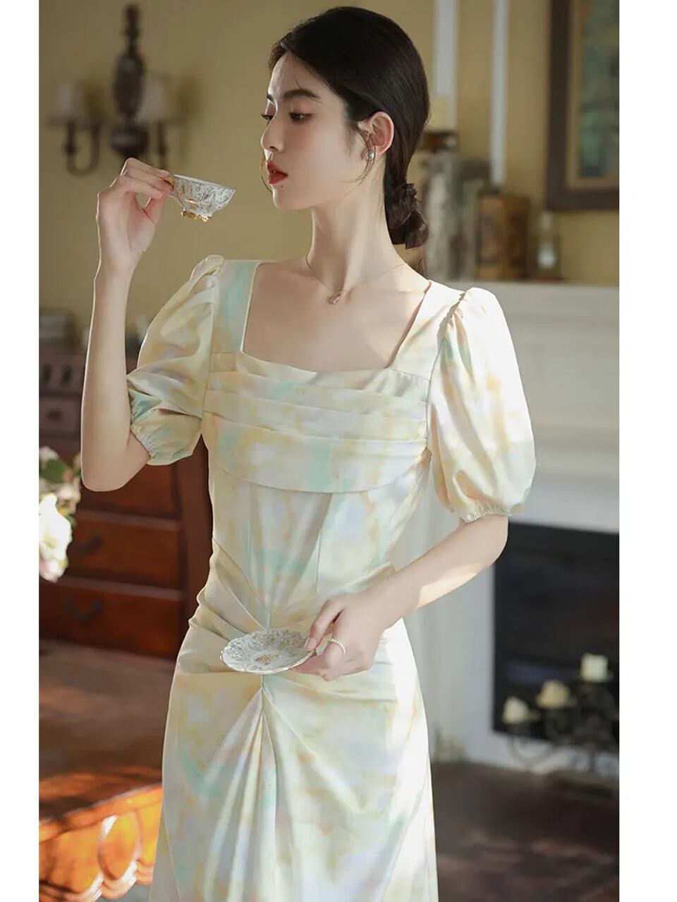 【0302】Gathered Flower Slit Short Sleeve Dress